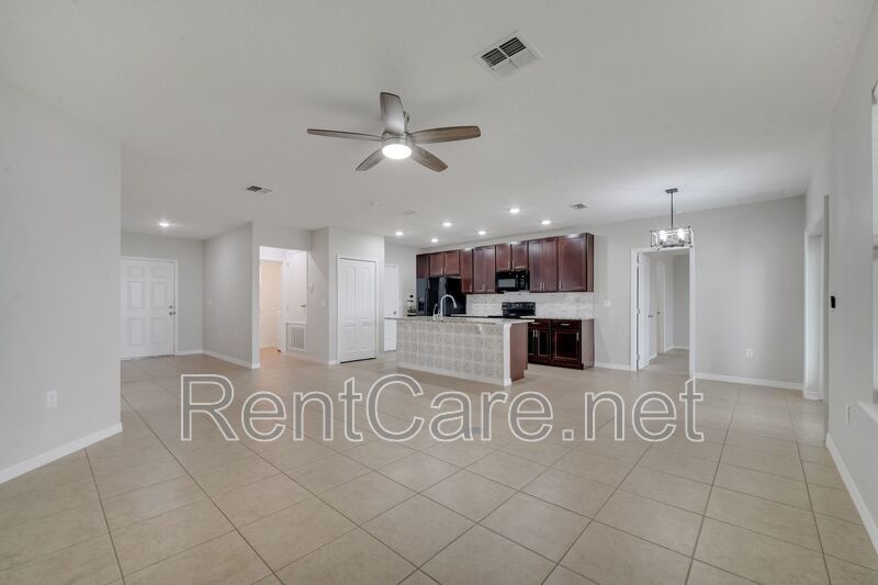 Charming one-story home featuring 3 spacious bedrooms and 2 full baths, perfectly designed for comfortable living. Enjoy the convenience of a 2-car garage, all kitchen appliances and an interior laundry room, making move-in a breeze. Inside, you'll find a blend of carpet and tile flooring, offering both warmth and durability. Step outside to a large fenced-in backyard, perfect for pets, outdoor gatherings, or simply relaxing. The covered lanai provides a great space to enjoy your morning coffee or evening breeze. Pet-friendly and packed with desirable features, this home is ready to welcome its new residents!
