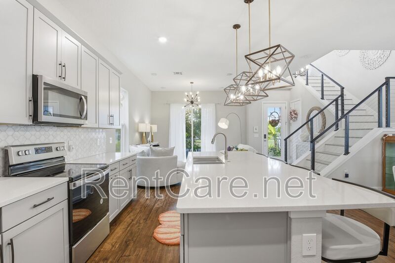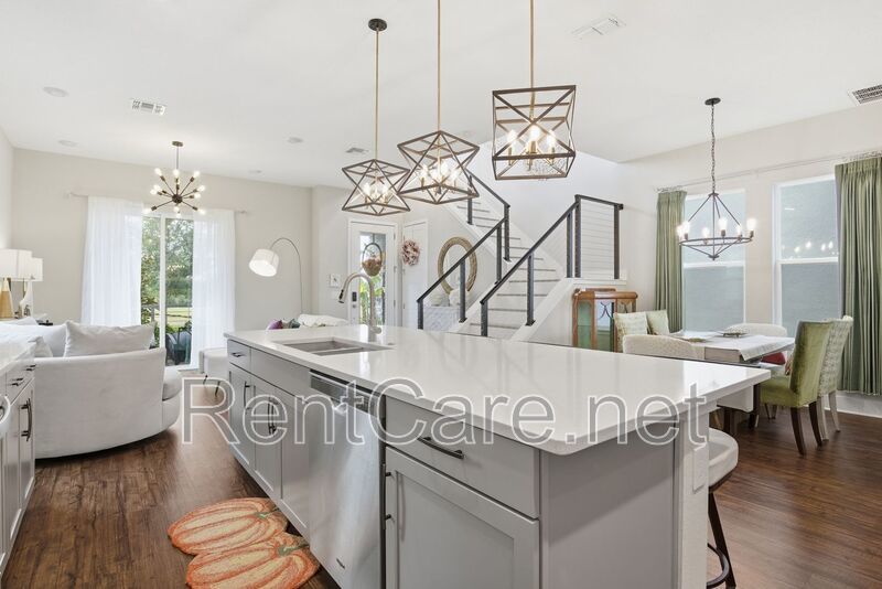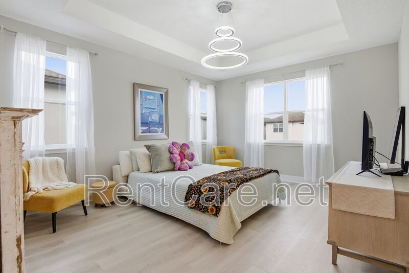 Welcome to this stunning 3-bedroom, 2.5-bathroom home located in the vibrant Watermark community of Winter Garden, FL. This modern designed home boasts a spacious interior with wood laminate flooring in all living areas, quartz countertops, and stainless steel kitchen appliances. The large second-floor loft adds an extra dimension of space and versatility. The home also features an interior laundry room for your convenience, double master closets for ample storage, and tiled bathrooms for a touch of luxury. The exterior is just as impressive with a two-car garage and a paved driveway. As part of a lively community, you'll have access to a range of amenities including a community pool, playground, fitness center, basketball court, and tennis court. This home perfectly blends comfort, style, and community living.