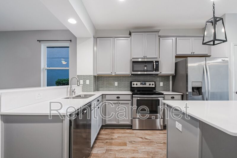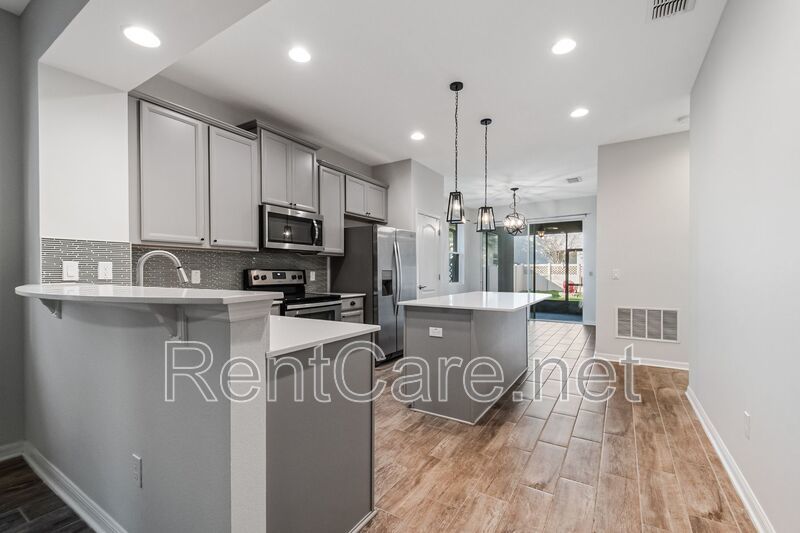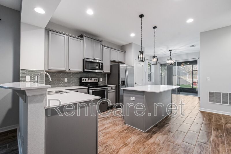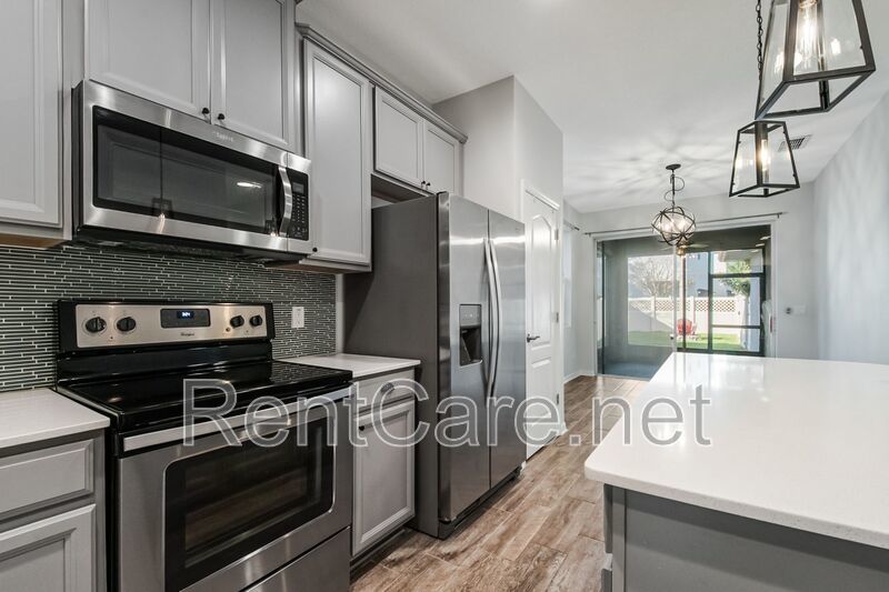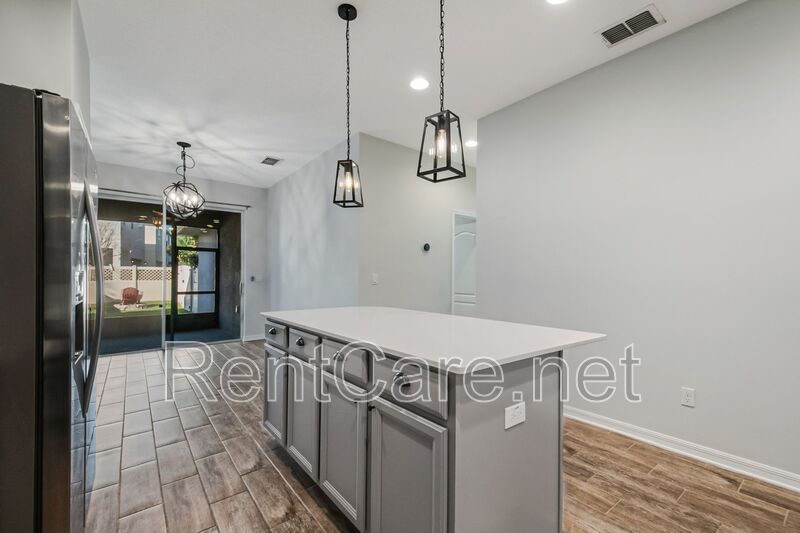Welcome to this stunning 3-bedroom, 2-bathroom home located in the beautiful and desirable Orchard Hills subdivision of Winter Garden, FL. This home boasts a split bedroom plan, offering privacy and space, with carpeted bedrooms for added comfort. The master suite features a garden tub, perfect for unwinding after a long day. The open floor-plan is ideal for entertaining, with wood look tiled living areas and modern fixtures adding a touch of elegance. The kitchen is equipped with stainless steel appliances, ready for your culinary adventures. The interior has been freshly painted, giving the home a clean and bright feel. Step outside to a manicured lawn and a fence enclosed backyard, perfect for outdoor activities. Not to mention lawn service is included in the rent! The screen enclosed rear patio is a great spot for relaxation, while the front porch offers a scenic pond view, adding to the home's charm. The property also includes a large interior laundry room and a two-car garage for your convenience. As part of a vibrant community, you'll have access to a community pool, fitness center, and clubhouse. This home is not just a place to live, but a lifestyle to enjoy. Come and experience the comfort and convenience this home has to offer.