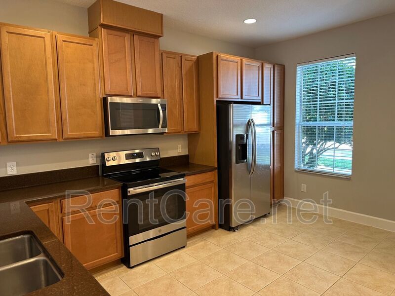 Spacious 3/2.5 townhouse, located in Summerport Community in Windermere! Summerport Community offers residents a pool, fitness center, volleyball courts, tennis courts, playground, and clubhouse. This 2-story townhome provides a warm welcome, with a paved walkway leading to a cozy front porch area for relaxation. The interior has been painted a lovely neutral gray throughout all rooms. The large and open fully-equipped kitchen offers updated granite counter tops, impressive 42" maple tone cabinetry providing plenty of storage, double basin sink, and breakfast bar. The kitchen shares an open area with the dining room. The floor plan features a living room with French doors leading to the paved back patio, and a formal dining and living room. Half bath located downstairs for guests. Family room is wired for surround sound. Tile flooring downstairs, with carpet flooring throughout the upstairs. All bedrooms are located upstairs and offer ceiling fans. The tray ceiling master bedroom is vast, and has a master bathroom with dual vanities, large garden tub, separate step-in shower, and walk-in closet. Guest bathroom features shower/tub combination. Home has interior laundry room, tenant must provide their own washer and dryer. Two car detached garage is available for tenants use.
